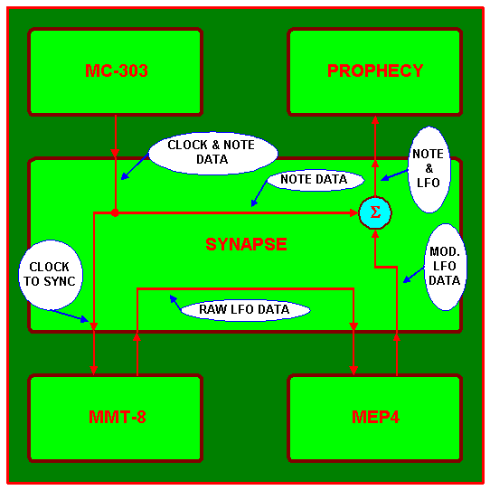 MC-303 is routed to a Prophecy to play the notes (temporarily)